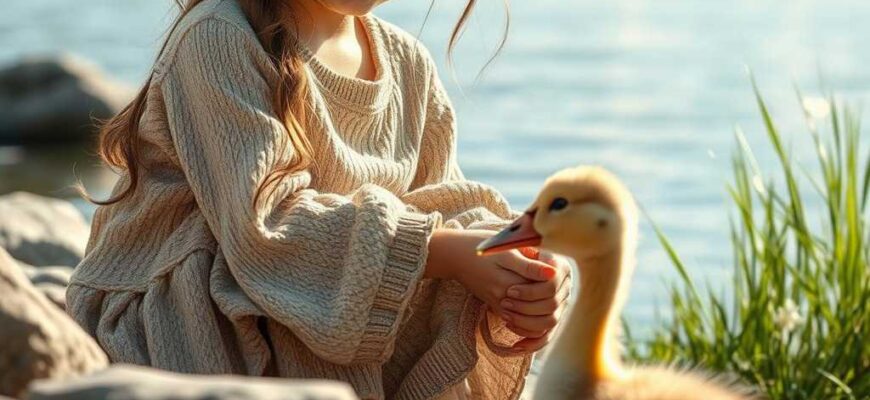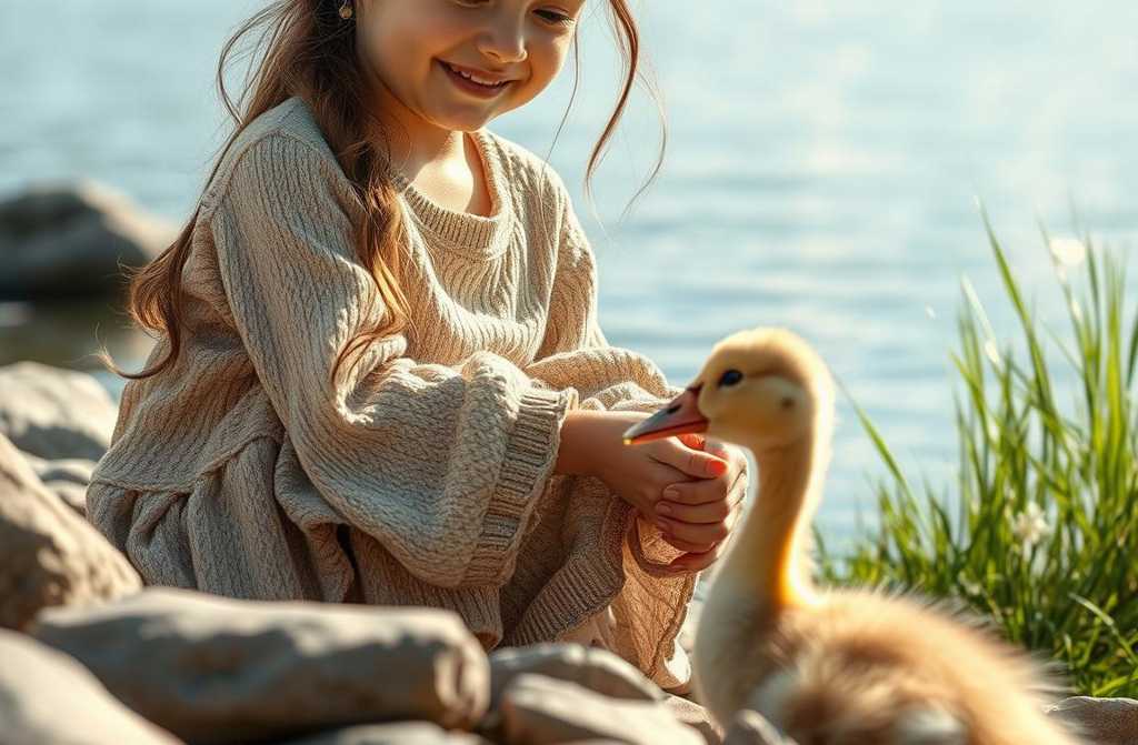 Mezi kameny u břehu zůstal zachycen kachní mláděček, zatímco jeho rodina plavala kolem, volajíc ho k sobě. Jarmila opatrně vyjmula malý křehký ptáček a vrátila ho do náruče matky. Malý kachna se vrátil ke svému rodu, a společně odplavali podél hladiny jako tichý balet.