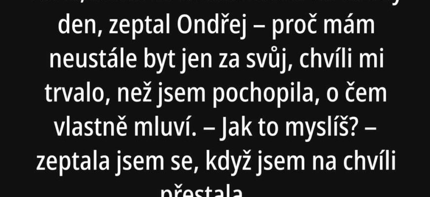 Když se mě večer, zatímco si balil tašku na druhý den, zeptal Ondřej proč mám neustále byt jen za svůj, chvíli mi trvalo, než jsem pochopila, o čem vlastně mluví.
