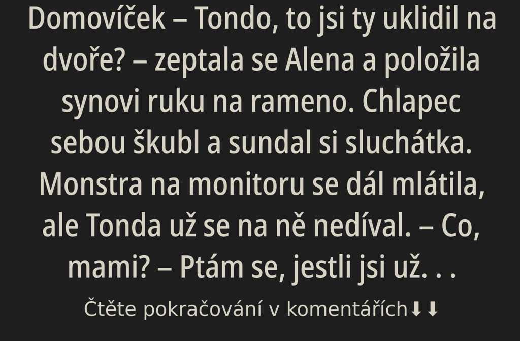 Chlapec sebou škubl a sundal si sluchátka. Monstra na monitoru se dál mlátila, ale Tonda už se na ně nedíval.