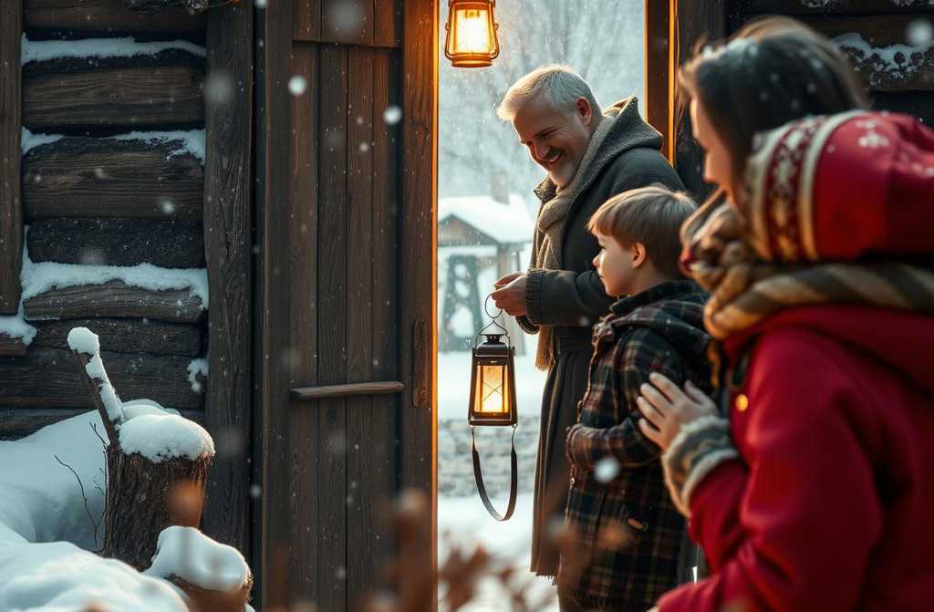 Strach se neobjeví, ale nedokáže pochopit, kdo by v takové nepřízni přišel do jejich okrajové vesnice. V dobrém počasí sem tam někdo přijdě, ale tady, blízko lesa, se to stává zřídka. Otevře dveře a uvidí muže v sněhu, který se doslova zhroutí na zem. Zavolá syna.