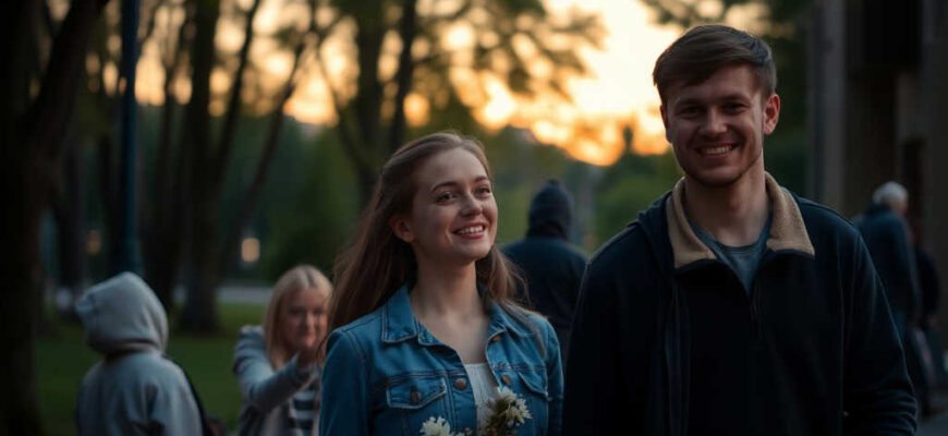 V parku ji objal tichý šum stromů a teplý večer. A tam, mezi světly lamp, stál on Jaroslav, v ruce luční kytice. Prosté, ale krásné.