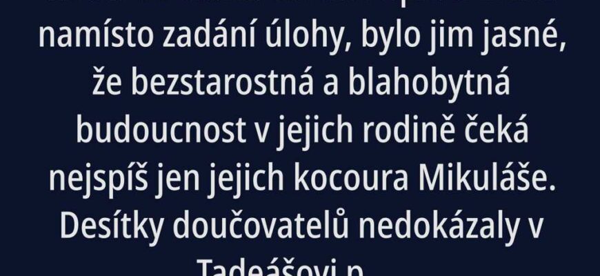 Víte, že se mi to přestává líbit? řekla jednou při večeři maminka. Víš, co si Tadeáš přeje k narozeninám?