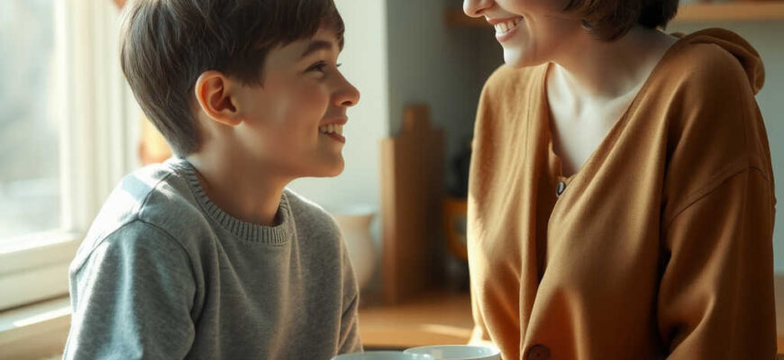 Sednou ke stolu. Máma mu přistrčí talíř s kaší, sedne si naproti.