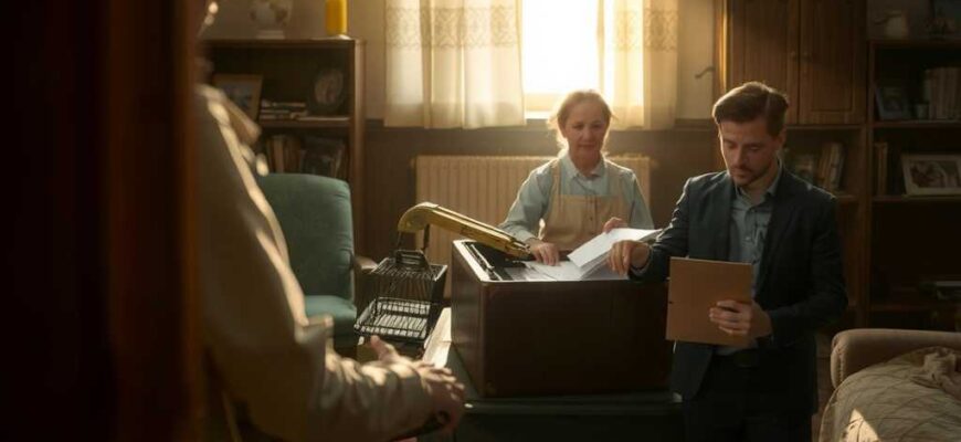 Společně vešli do skromného, ale útulného obývacího pokoje. Nábytek byl sice starý, ale všude bylo čisto. Na zdi visely rodinné fotografie a v místnosti voněla čerstvá káva.