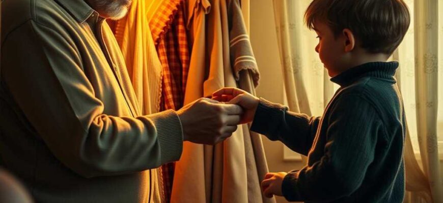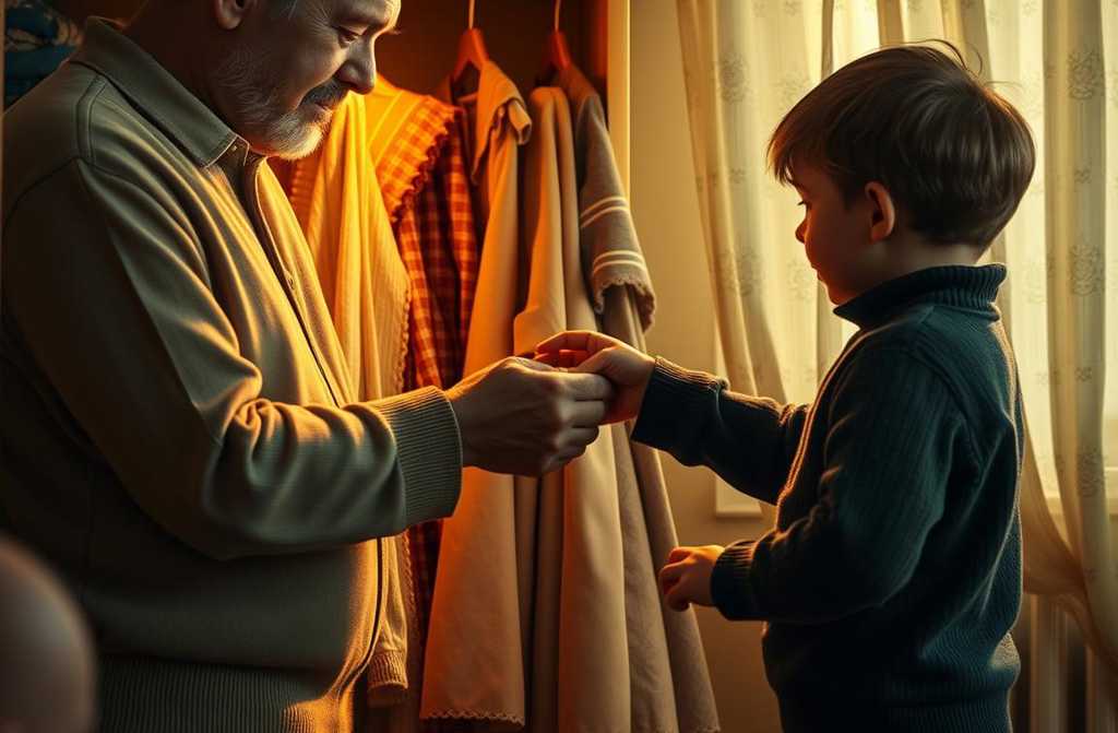 Jednu po druhé vytahoval z tašky mamčiny věci, opatrně je ukládal na police nebo zavěšoval na věšáky, jak je mamka nazývala. Její boty a polobotky položil dolů. Když bylo vše připravené, vykročil krok zpět, aby zhodnotil pořádek. Před očima mu stála matka, ve všech šatech, úsměv na tváři. Přišel k řadě blůz a šatů, projel ruku, objal je, nasál známou vůni Stál bezradně před šatníkem, nevíc, co s nimi dál.
