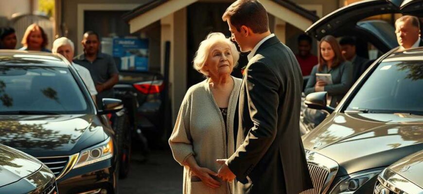 Tři dny poté, za úsvitu, rozlehl se po ulici hlasitý rachot. Před domem paní Alžběty stálo deset lesklých aut, dveře dokořán a uvnitř plno dárků, spotřebičů i obálek s penězi. Z jednoho vozu vystoupil muž v obleku s vlhkýma očima a dojatě řekl: