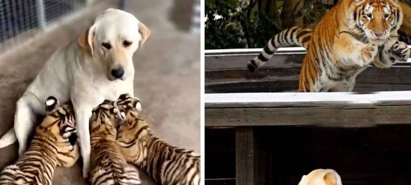 Pes jménem Lou vychoval tři tygří mláďata, ale po letech se stalo něco nečekaného