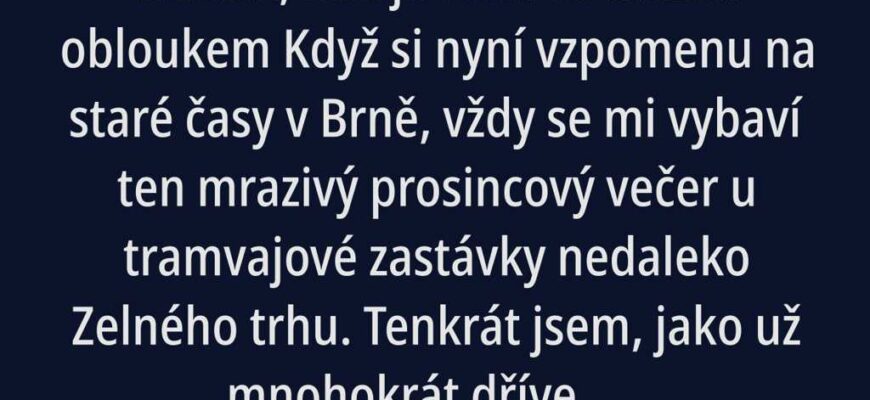 Když si nyní vzpomenu na staré časy v Brně, vždy se mi vybaví ten mrazivý prosincový večer u tramvajové zastávky nedaleko Zelného trhu. Tenkrát jsem, jako už mnohokrát dříve, zase někam spěchal. Měl jsem věčně napilno, s hlavou plnou plánů a rozvrhů, které jsem nikdy nestihnul dodržet. Toho dne ovšem mé zpožďování mělo jiný rozměr čekala na mě Lucie v nové restauraci na Úvoze. Vždy byla netrpělivá a čekání nenáviděla.