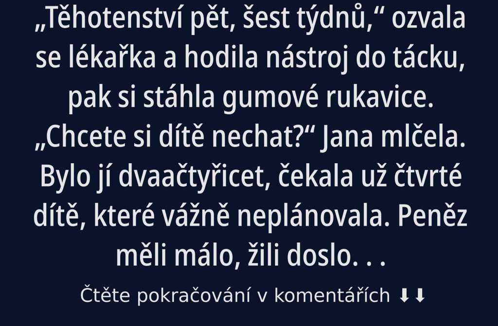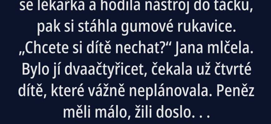 Bylo jí dvaačtyřicet, čekala už čtvrté dítě, které vážně neplánovala. Peněz měli málo, žili doslova od výplaty k výplatě.