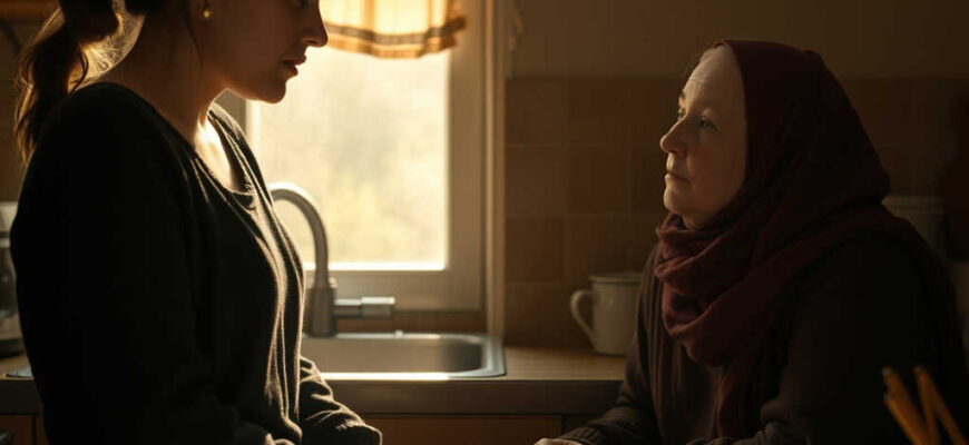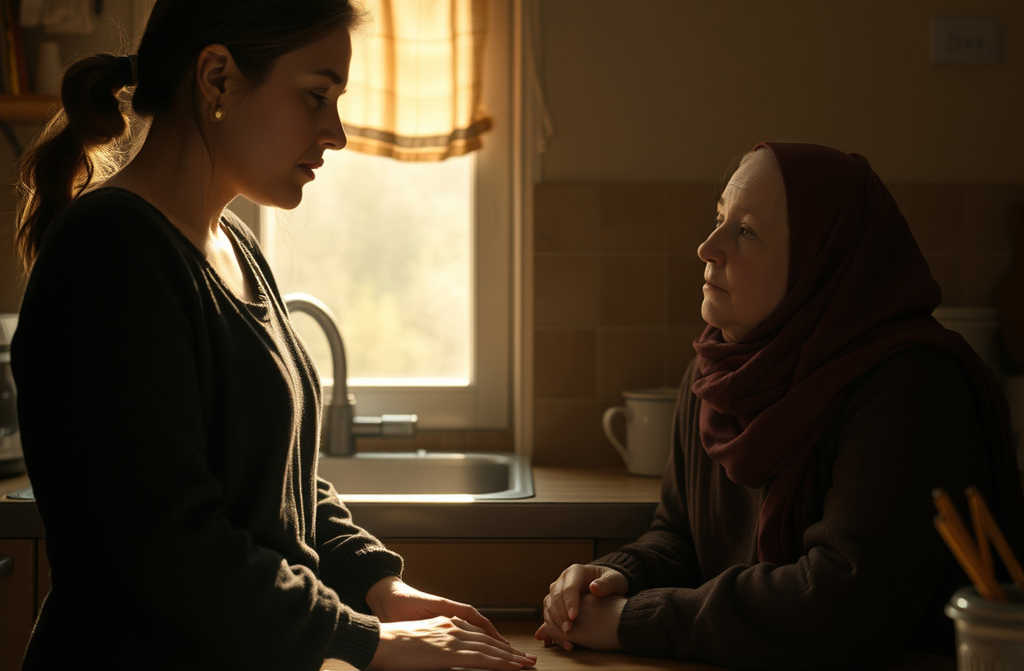 Zkroutila rty a začala rovnat ubrus, jako by problém byl v hadru, ne v jejích slovech.